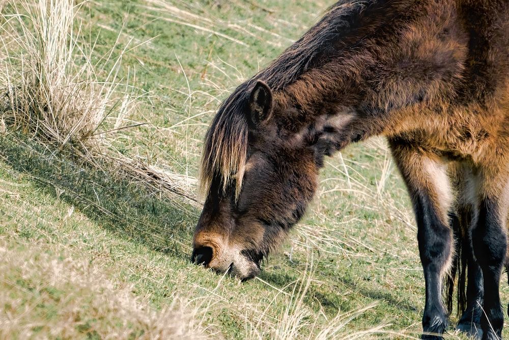Exmoor-Ponys, wunderschöne große Weidetiere, die in verschiedenen Naturschutzgebieten zu finden sind. Mit ihrem robusten Körperbau und ihrem dunklen Fell versprühen sie einen einzigartigen Charme. Diese Wildpferde bewohnen weite Gebiete wie Moore und Dünen und spielen eine entscheidende Rolle bei der Erhaltung der Artenvielfalt. Sie weiden auf natürliche Weise und tragen zur Bewirtschaftung der Vegetation bei, wodurch eine abwechslungsreiche Landschaft entsteht. Diese Weidetiere in ihrem natürlichen Lebensraum zu sehen, ist ein faszinierendes Erlebnis.