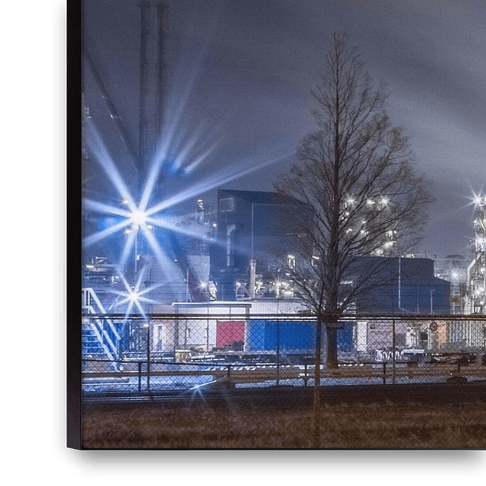 Bestelle das Foto Exxon Botlek von Henk Smit als Reproduktion auf Leinwand, Alu-Dibond, als Poster, Fototapete oder Acrylglasbild.
