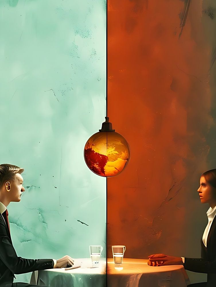 Exzentrische Gegensätze sind wie kontrastreiche Magnete, deren einzigartige Eigenschaften sich gegenseitig ergänzen und verstärken. Der eine Pol ist überschwänglich, extravagant und lebendig, der andere gedämpft, zurückhaltend und kontemplativ. Durch ihre Gegensätze ziehen sie sich gegenseitig an und schaffen ein dynamisches Gleichgewicht zwischen Extravaganz und Gelassenheit, Ausdruck und Introspektion. Zusammen bilden sie eine fesselnde Harmonie unterschiedlicher Energien, die die Welt mit Vielfalt und Komplexität bereichern.