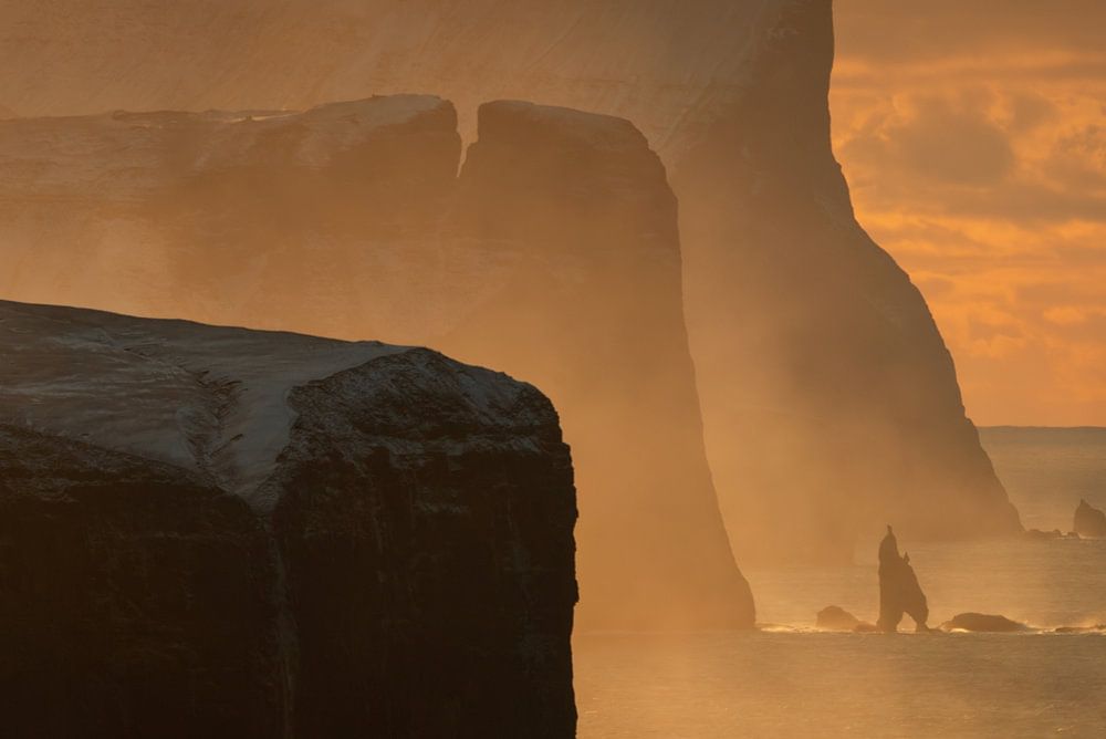 Streymoy und Eysturoy Klippen bei Sonnenuntergang, Färöer Inseln