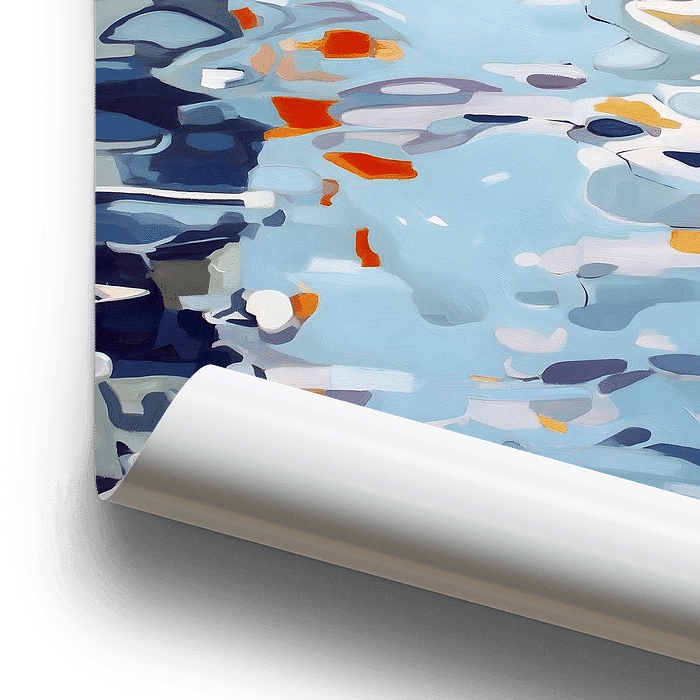 Holen Sie sich die beruhigende Schönheit des Wassers in Ihr Zuhause mit diesem bezaubernden abstrakten Gemälde "Reflections in Motion". Inspiriert vom sich ständig verändernden Tanz des Lichts auf dem Wasser, kombiniert dieses Kunstwerk meisterhaft kühle Blautöne, sanfte Grautöne und lebhafte Orange- und Goldakzente zu einem…