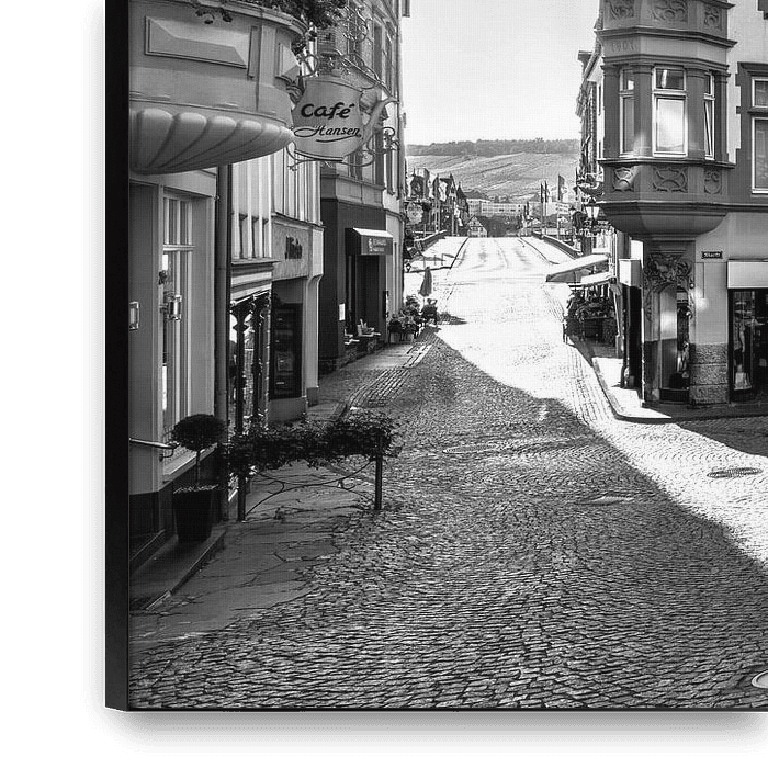 * Bernkastel-Kues Marktplatz im Sonnenlicht in schwarzweiß *