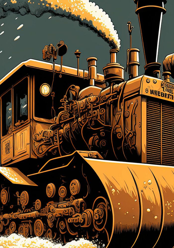 Schönes Vektordesign Bild eines Fantasie-Dampffahrzeugs in einer begrenzten Farbpalette.