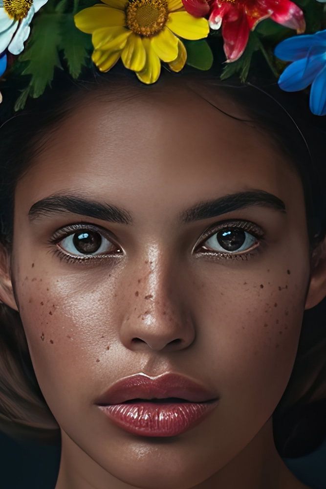 digitales malerisches abstraktes fiktives Porträt mit Blumen