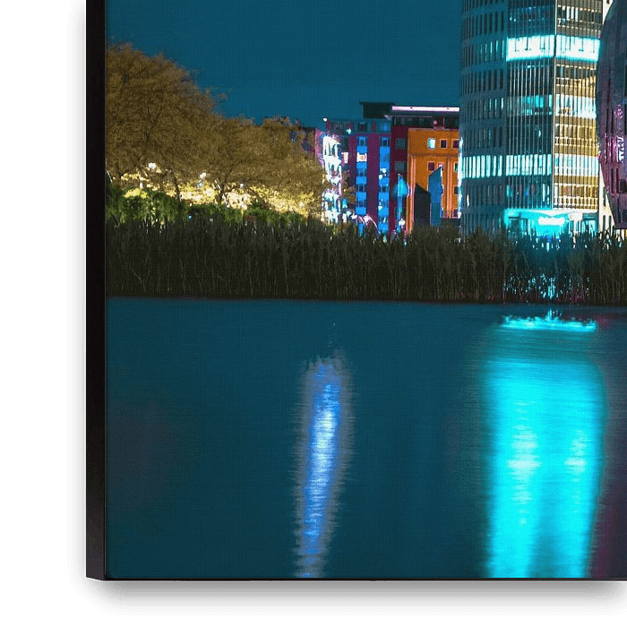 Ihre gewählte Kunst auf Leinwand, gespannt in einem Aluminiumrahmen. Schnell und einfach austauschbar für eine frische Ausstrahlung und ganz nach Ihren Wünschen.