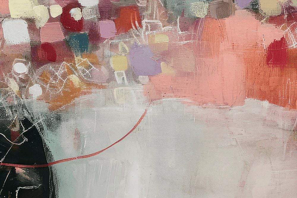 Farbenfroh, modern und abstrakt in Pastellfarben mit Schwarz als Kontrast. Ein echter Blickfang für Ihr Interieur!