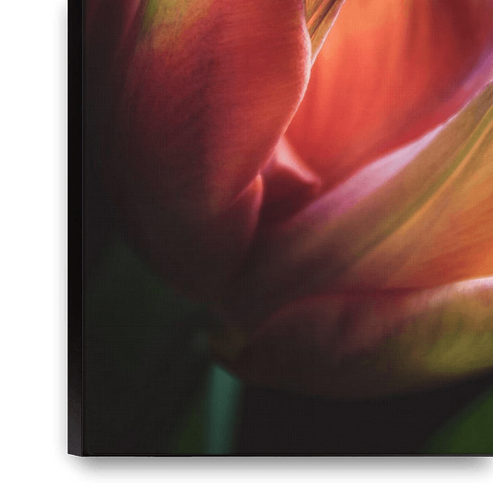 Bunte Tulpe. Sandra Hazes Kunstfotografie. Durch den kreativen Einsatz von Fokus, hellen Farben, Licht und Schatten wird ein einzigartiger magischer und dunkler Stil geschaffen. Holen Sie sich die Natur ins Haus und genießen Sie die besondere Atmosphäre.