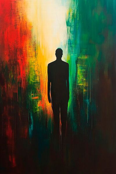 Bestelle diese Malerei Farbenfrohe Silhouette im Lichtspiel von Poster Art Shop als Reproduktion auf Leinwand, Alu-Dibond, als Poster, Fototapete oder Acrylglasbild.
