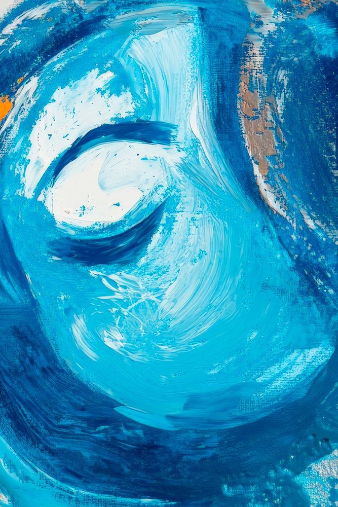 In sanften Blautönen, durchzogen von lebhaften orangefarbenen Wirbeln, entfaltet sich eine harmonische Komposition, die Ruhe und Kreativität ausstrahlt. Die sanften Formen scheinen zu fließen und laden zur Entspannung ein. Ideal für ein modernes Wohnzimmer oder ein inspirierendes Büro, wo es Kreativität anregt und eine beruhigende Atmosphäre schafft.