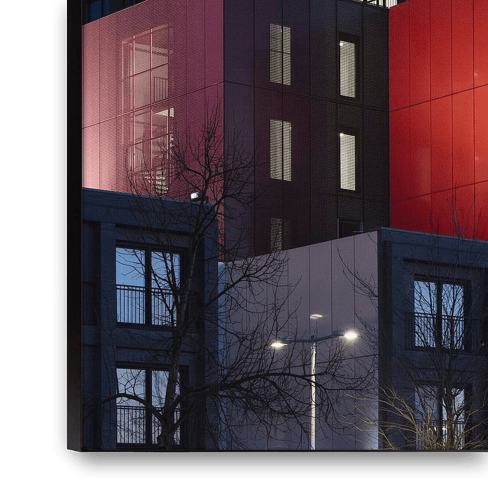 Bestelle dieses abstrakte Wandbild Farbenfrohe Wohnungen. von Rene van Rijswijk als Kunstdruck auf Leinwand, Alu-Dibond, als Poster, Fototapete oder Acrylglasbild.