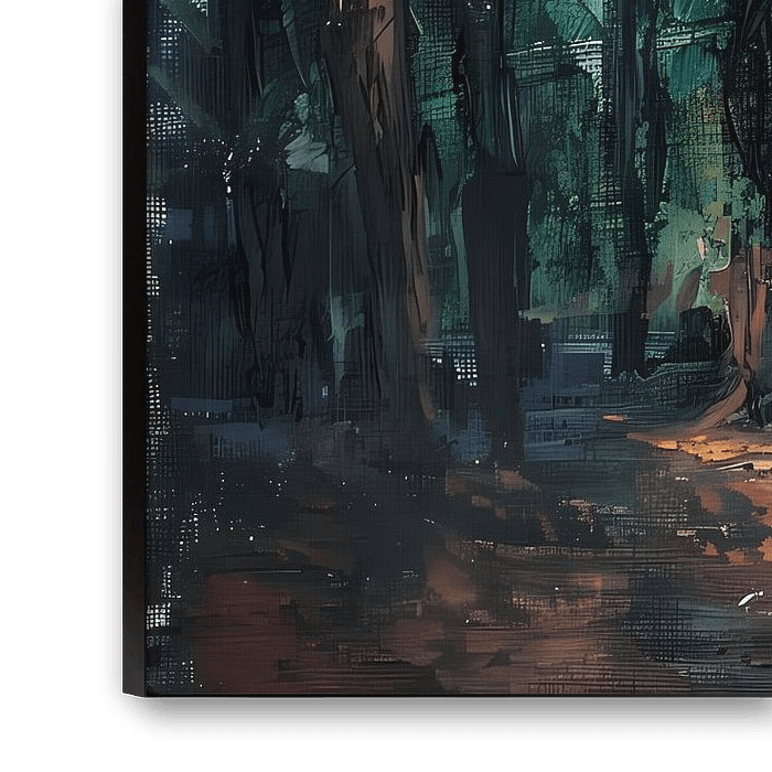 Dieses lebendige Kunstwerk erweckt die Essenz eines impressionistischen Waldes zum Leben, wobei die Sonnenstrahlen durch die dichten Baumkronen schimmern und eine Farbpalette aus Grün-, Gelb-, Blau- und Weißtönen erzeugen. Die dynamischen Pinselstriche und die satten Farben erzeugen ein Gefühl von Bewegung und Licht und lassen den Wald geheimnisvoll und einladend erscheinen. Dieses Gemälde ist perfekt für Natur- und Kunstliebhaber und verwandelt jeden Raum in eine Oase der Ruhe und Schönheit.