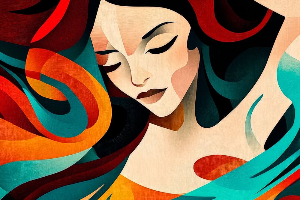 Eine harmonische Symphonie aus lebhaften Farben und fließenden Linien entfaltet sich, während eine Frau sanft in ihrer eigenen Welt verloren ist. Ihre Ausdruckskraft und die dynamischen Formen schaffen eine Atmosphäre der Inspiration und Ruhe. Dieses Kunstwerk eignet sich hervorragend für ein Wohnzimmer, wo es Gespräche anregen und eine kreative Stimmung fördern kann.