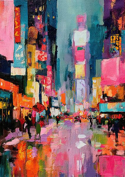 Bestelle dieses abstrakte Wandbild Farbenrausch der Metropole von Niklas Maximilian als Reproduktion auf Leinwand, Alu-Dibond, als Poster, Fototapete oder Acrylglasbild.