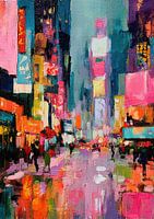 Bestelle dieses abstrakte Wandbild Farbenrausch der Metropole von Niklas Maximilian als Reproduktion auf Leinwand, Alu-Dibond, als Poster, Fototapete oder Acrylglasbild.