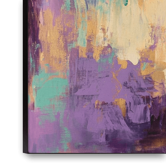 Sanfte Farbtöne von Violett und Grün verschmelzen mit goldenen Akzenten, die ein Gefühl von Eleganz und Tiefe erzeugen. Dieses abstrakte Kunstwerk lädt zum Träumen ein und wird zum Blickfang in jedem Wohnzimmer, wo es die Fantasie anregt und eine harmonische Atmosphäre schafft. Ein wahres Highlight für kreative Geister!