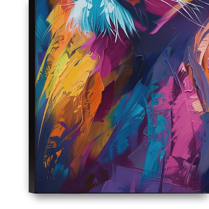 "Colour Spectrum Lion" ist ein lebhaftes und dynamisches Kunstwerk, das einen kräftigen Löwen in einer Explosion von leuchtenden Farben darstellt. Die kräftigen Pinselstriche und die Verwendung von Neon- und Regenbogenfarben verleihen dem Löwen ein majestätisches und modernes Aussehen. Die Intensität der Farben und der…