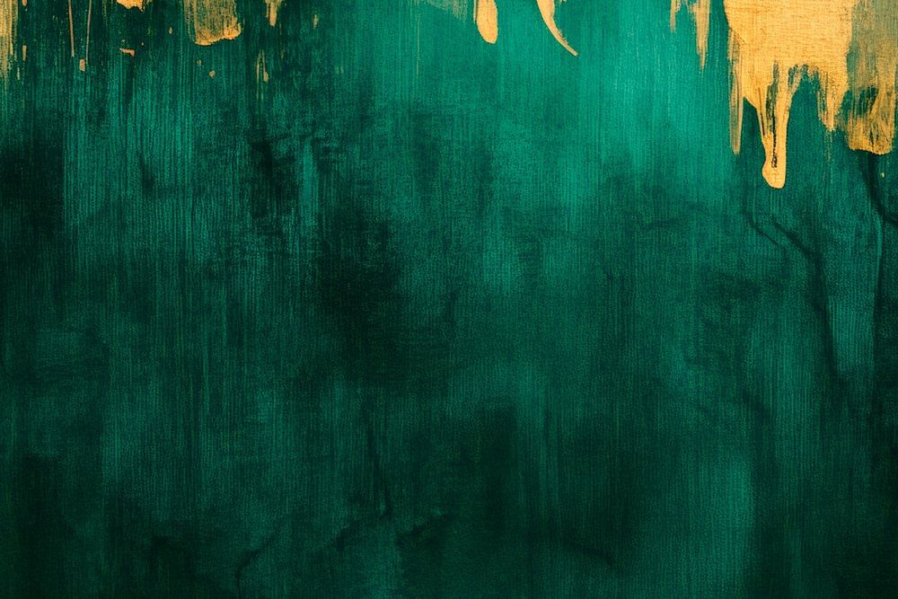 Ein faszinierendes Farbenspiel aus tiefem Grün und warmem Gold zieht den Blick an und vermittelt ein Gefühl von Ruhe und Harmonie. Die sanften Übergänge verleihen dem Raum eine dynamische Energie. Dieses Kunstwerk passt perfekt in ein Wohnzimmer, wo es Gespräche anregt und eine einladende Atmosphäre schafft.