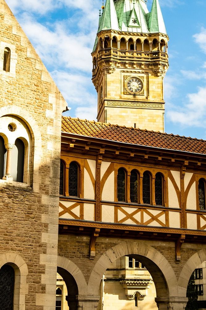 Fassade Burg Dankwarderode und Turm Rathaus mit Durchgang am Burgplatz in Braunschweig
