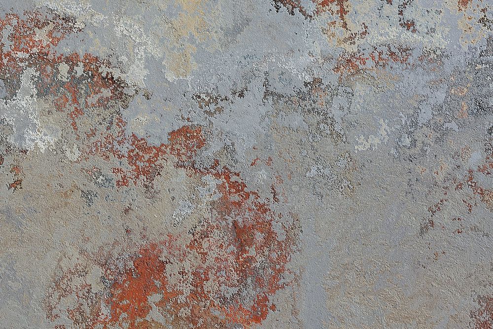 Oberfläche einer mit Putz überzogenen schmutzigen verwitterten Fassade eines alten maroden Hauses