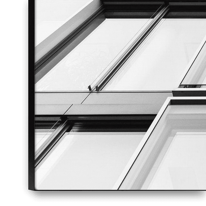 Bestelle dieses abstrakte Wandbild Fassade von VIDEOMUNDUM als Reproduktion auf Leinwand, Alu-Dibond, als Poster, Fototapete oder Acrylglasbild.