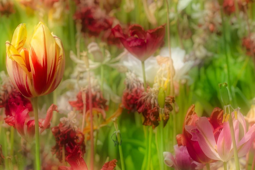 Niederlande, Noordwijkerhout, (Fast) verblühte Tulpen. Traumhafte Atmosphäre.