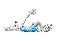 Bestelle dieses Schmetterling-Wandbild Faules Mäusemädchen liegt träumend im Gras von Ivonne Wierink als Reproduktion auf Leinwand, Alu-Dibond, als Poster, Fototapete oder Acrylglasbild.