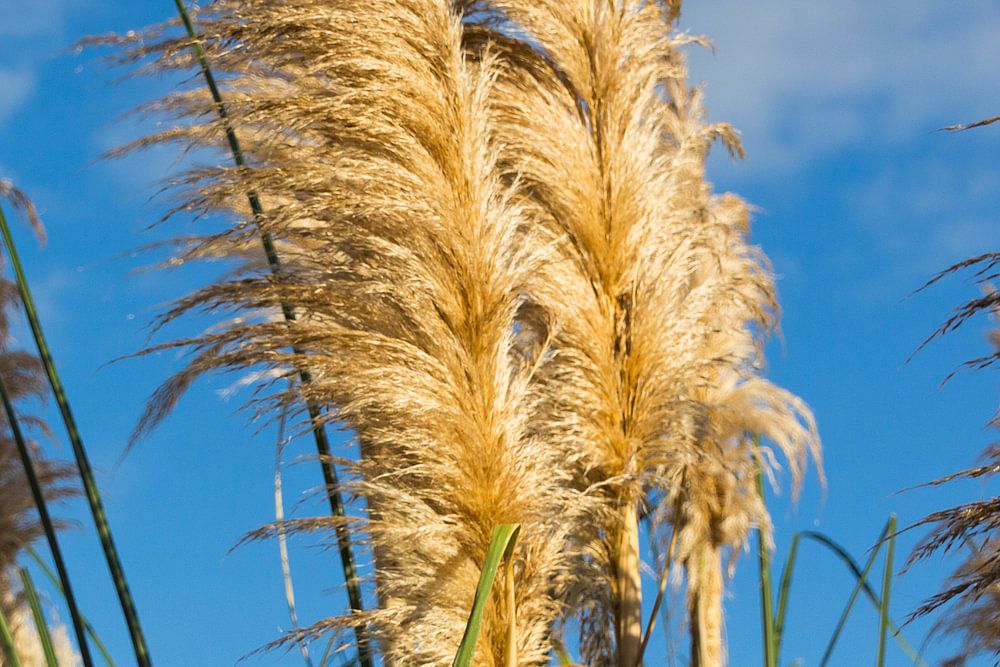 Richten Sie die Kamera einfach gleich hoch, und schon kommen diese schönen Federn mit einem blauen Himmel im Hintergrund zum Vorschein. Auf diese Weise entstand am 2. Dezember 2015 dieses Landschaftsbild im Verhältnis 3:2 mit den Hauptfarben Blau und Gelb und etwas Grün. Ein Bild zum Träumen.