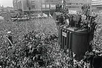 Bestelle das Foto Feijenoord-Anhänger '70 von Walljar als Kunstdruck auf Leinwand, Alu-Dibond, als Poster, Fototapete oder Acrylglasbild.