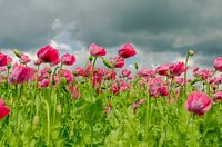 Ein Mohnblumenfeld mit einer schönen rosafatbenen Farbe, in 's-Heer Arendskerke in den Niederlanden. Für den Schlafmohn angebaut, der auf Brot sitzt.