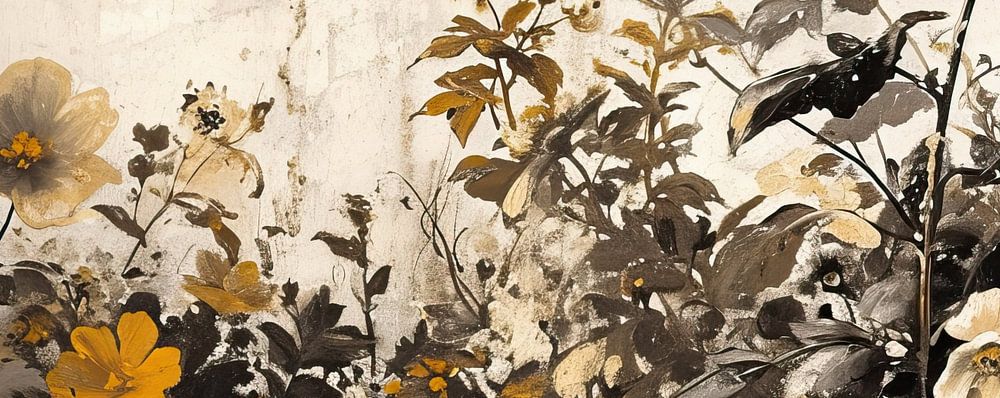 Field Flowers | Modern Floral Art - Hier sehen wir eine charmante Interpretation eines Blumenfeldes in einer zeitgenössischen Farbpalette aus Gold, Schwarz und Weiß, die zusammen ein raffiniertes und doch natürliches Aussehen ergeben. Die künstlerische Komposition verleiht dem Bild Tiefe und Struktur, während die Blumen selbst, vielleicht Wildblumen, in ihrer Schlichtheit eine rustikale Eleganz ausstrahlen.