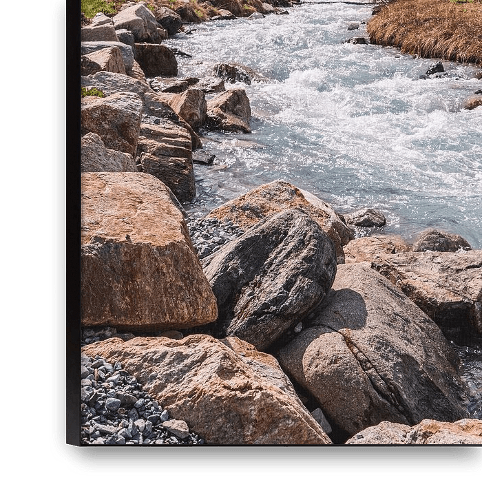 Bestelle dieses Landschafts-Wandbild Felsen an den Ufern des Flusses: 'Sertigbach' von Dafne Vos als Reproduktion auf Leinwand, Alu-Dibond, als Poster, Fototapete oder Acrylglasbild.