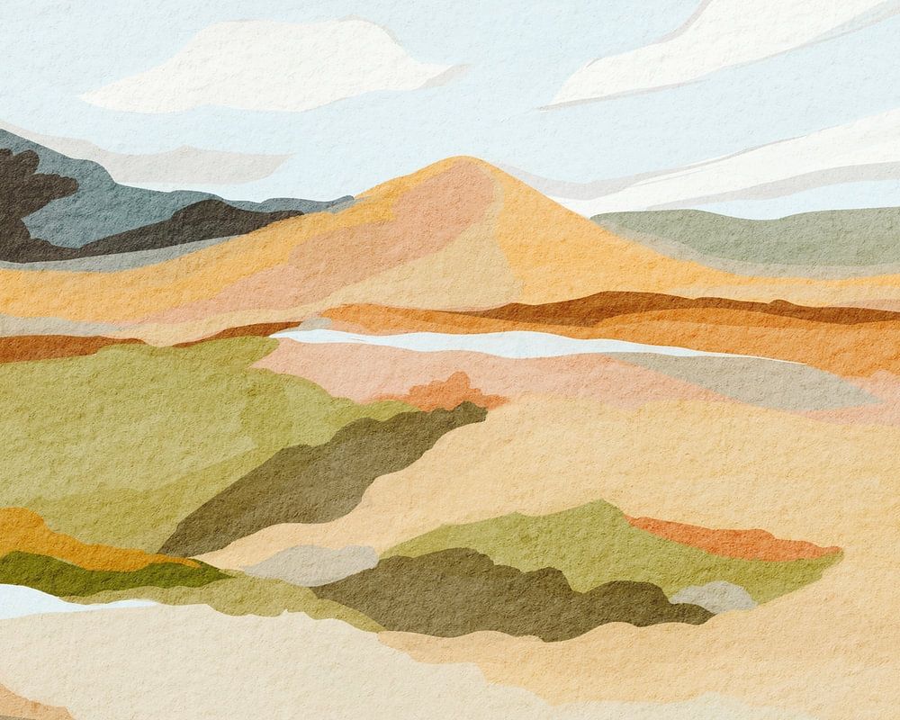 Bestelle dieses Landschafts-Wandbild Felsige Hügellandschaft von Nikita Jariwala als Reproduktion auf Leinwand, Alu-Dibond, als Poster, Fototapete oder Acrylglasbild.