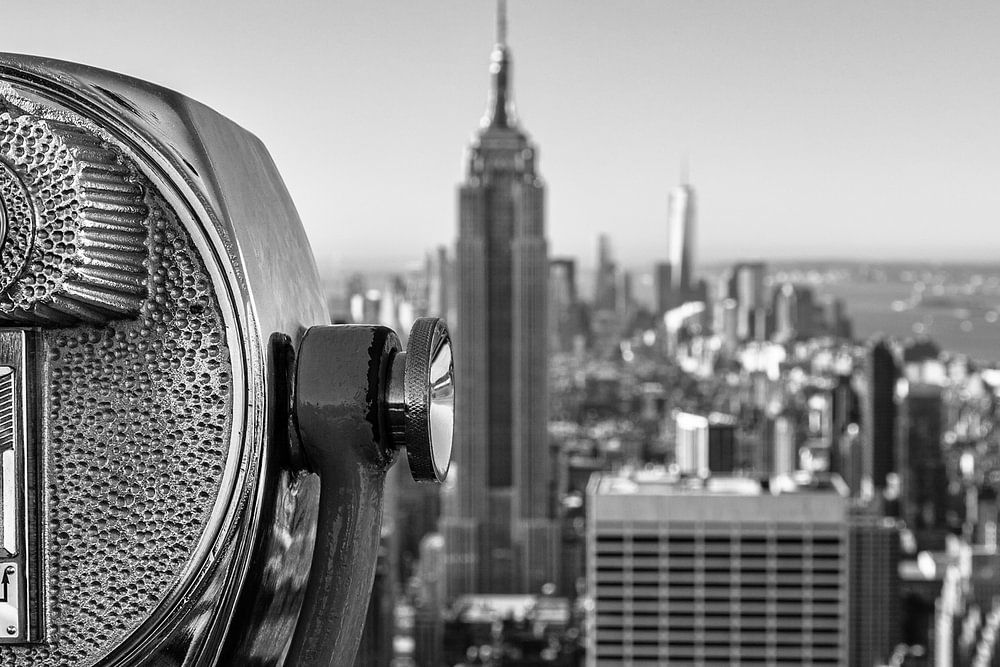 Ein Fernglas auf dem Empire State Building in schwarz-weiß