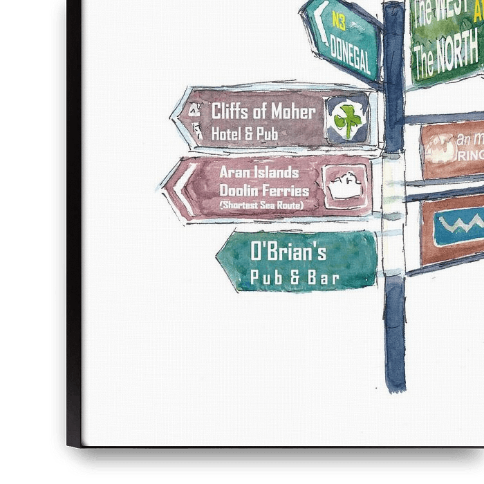 Bestelle diese Malerei Fernweh und Reiseträume - Der irische Wegweiser von Markus Bleichner als Reproduktion auf Leinwand, Alu-Dibond, als Poster, Fototapete oder Acrylglasbild.