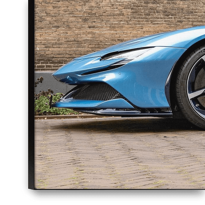 Bestelle das Foto Ferrari SF90 Spider Sportwagen in hellblau von Sjoerd van der Wal Fotografie als Reproduktion auf Leinwand, Alu-Dibond, als Poster, Fototapete oder Acrylglasbild.