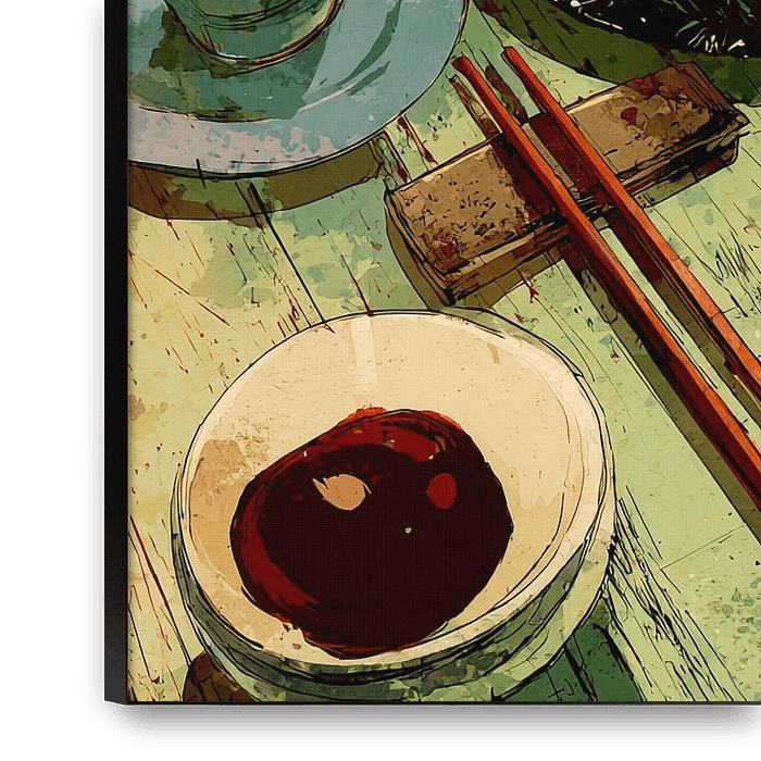 Bestelle diese Illustration Fest des Reises und Fisches von Vlindertuin-Art als Reproduktion auf Leinwand, Alu-Dibond, als Poster, Fototapete oder Acrylglasbild.