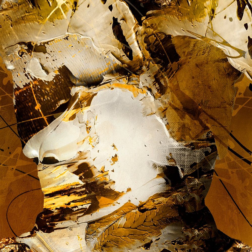 Die digitalen Arbeiten haben in der Regel die Grundform eines Porträts mit einem chaotischen Charakter, aus dem manchmal eine unerwartete Schönheit hervorgeht. Lassen Sie sich von diesem Porträt für Ihr Wohnzimmer oder Büro überraschen.