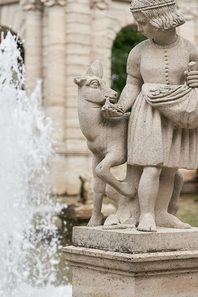 Figuren aus dem Märchen Brüderchen und Schwesterchen am Märchenbrunnen von 1913 im beliebten Volkspark Friedrichshain in Berlin