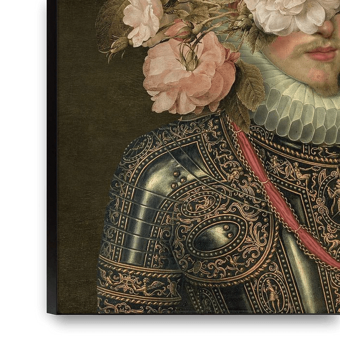 Im Jahr 2023 kombinierte ich das herrschaftliche Porträt mit Rosen aus dem Stillleben "Rosen in einer Glasvase" von Jacob van Hulsdonck aus dem Jahr 1640.