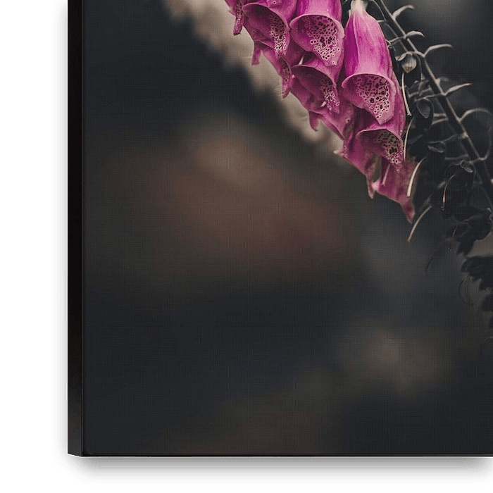 Bestelle dieses Blumen-Wandbild Fingerhut mit einem dunklen Rand. von Robby's fotografie als Reproduktion auf Leinwand, Alu-Dibond, als Poster, Fototapete oder Acrylglasbild.