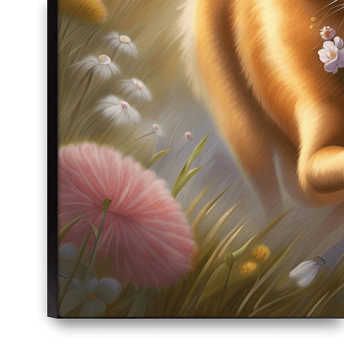 Bestelle das digitale Kunst Bild Finnischer Spitz spielt in einem Blumenfeld von Johannas Art Creations als Reproduktion auf Leinwand, Alu-Dibond, als Poster, Fototapete oder Acrylglasbild.