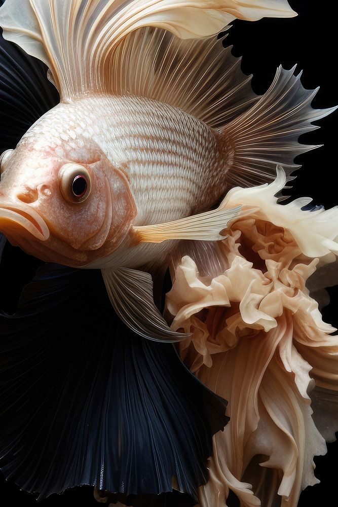 Ein Meeresleben in Stille, der Fisch gleitet durch ein dunkles Meer aus Leinwand, abstrakte Flossen vibrieren wie stille Poesie. Eine elegante Komposition strahlt eine schicke Ruhe aus, in der der stilisierte Fisch in geheimnisvoller Dunkelheit schwebt. Die Farben tanzen wie Schatten auf dem tiefen Hintergrund, während der Fisch ein Meisterwerk der heiteren Anmut ist. Das Gemälde vermittelt ein Gefühl von zeitloser Harmonie, wobei der Fisch wie eine stille Symphonie des Meeres ein Stillleben von Eleganz und Ruhe verkörpert.