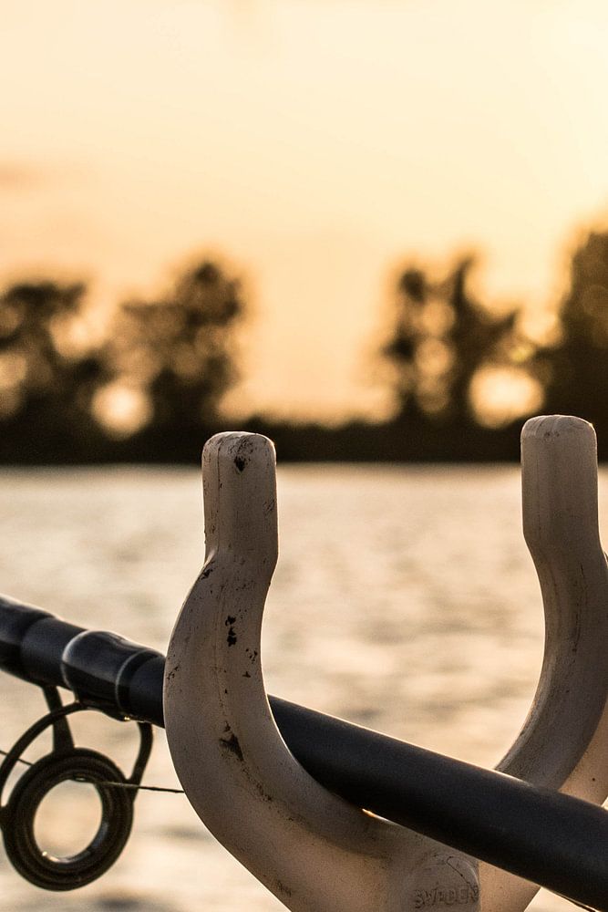Fischen am Abend. Schöne Farben, wegen des schönen Sonnenuntergangs.
