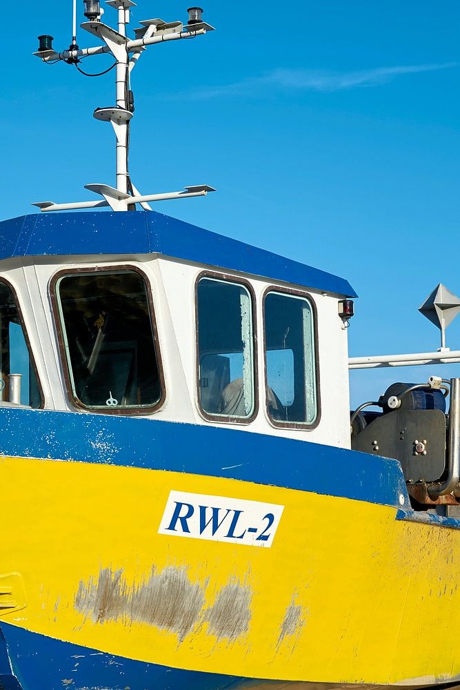 Fischerboot am Strand der polnischen Ostseeküste bei Rewal. Die Fischerboote gehören zu den beliebtesten Fotoobjekten an der Küste der beliebten Urlaubsregion.