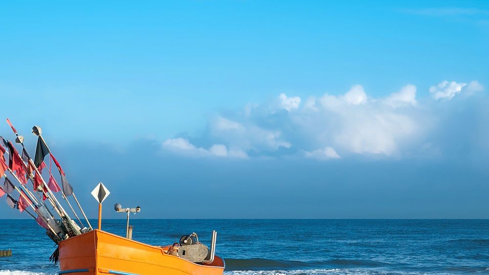 Fischerboot am Strand der polnischen Ostseeküste bei Rewal. Die Fischerboote gehören zu den beliebtesten Fotoobjekten an der Küste der beliebten Urlaubsregion.