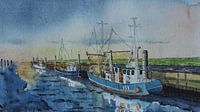 Bestelle diese Malerei Fischerboote im Heimathafen von Bert Groenhagen als Reproduktion auf Leinwand, Alu-Dibond, als Poster, Fototapete oder Acrylglasbild.