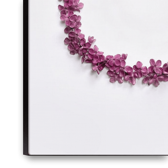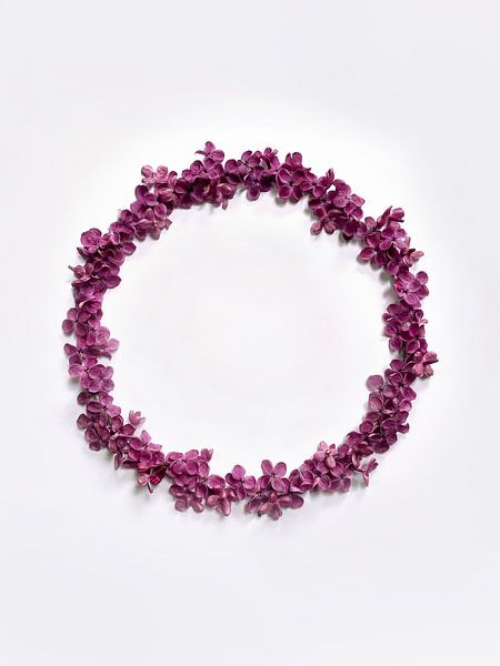 Bestelle dieses Blumen-Wandbild Fliederblütenkranz von TYPIQE by Atelier Fauconnier als Reproduktion auf Leinwand, Alu-Dibond, als Poster, Fototapete oder Acrylglasbild.