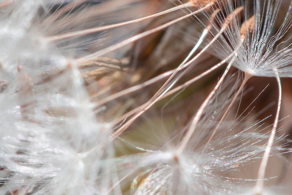 Ein Makrofoto sorgt dafür, dass man die Details eines flauschigen Samens gut sehen kann, und ein Teil des Fotos ist etwas unscharf, was aber bei den vielen flauschigen Samen nichts ausmacht und dem Bild einen verträumten Look verleiht.