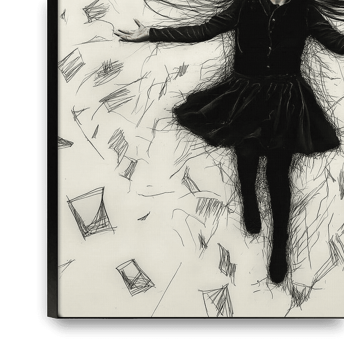 Flying Thoughts zeigt eine Frau in einer dynamischen Pose, die Arme weit ausgebreitet, während ihr langes Haar die Kraft der Bewegung widerspiegelt. Die Kraft ihres Haares, das durch die Luft zu wehen scheint, symbolisiert das Loslassen von Alltagsgedanken, als ob sie sich von allem befreit, was sie festhält. Das Bild evoziert ein…