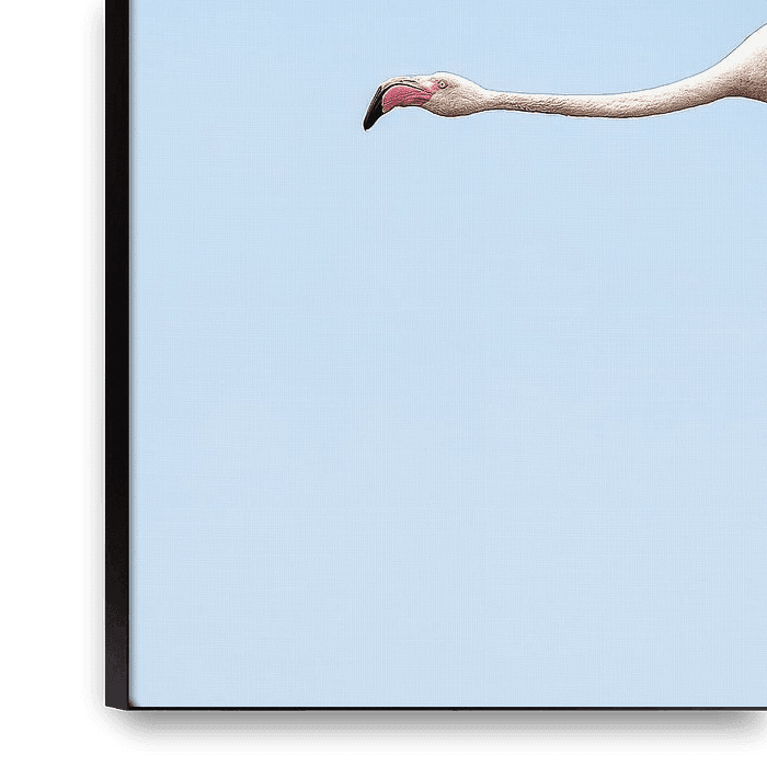 Bestelle das Foto Fliegender Flamingo von Patrick Haleyt Photography als Reproduktion auf Leinwand, Alu-Dibond, als Poster, Fototapete oder Acrylglasbild.